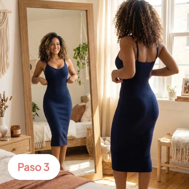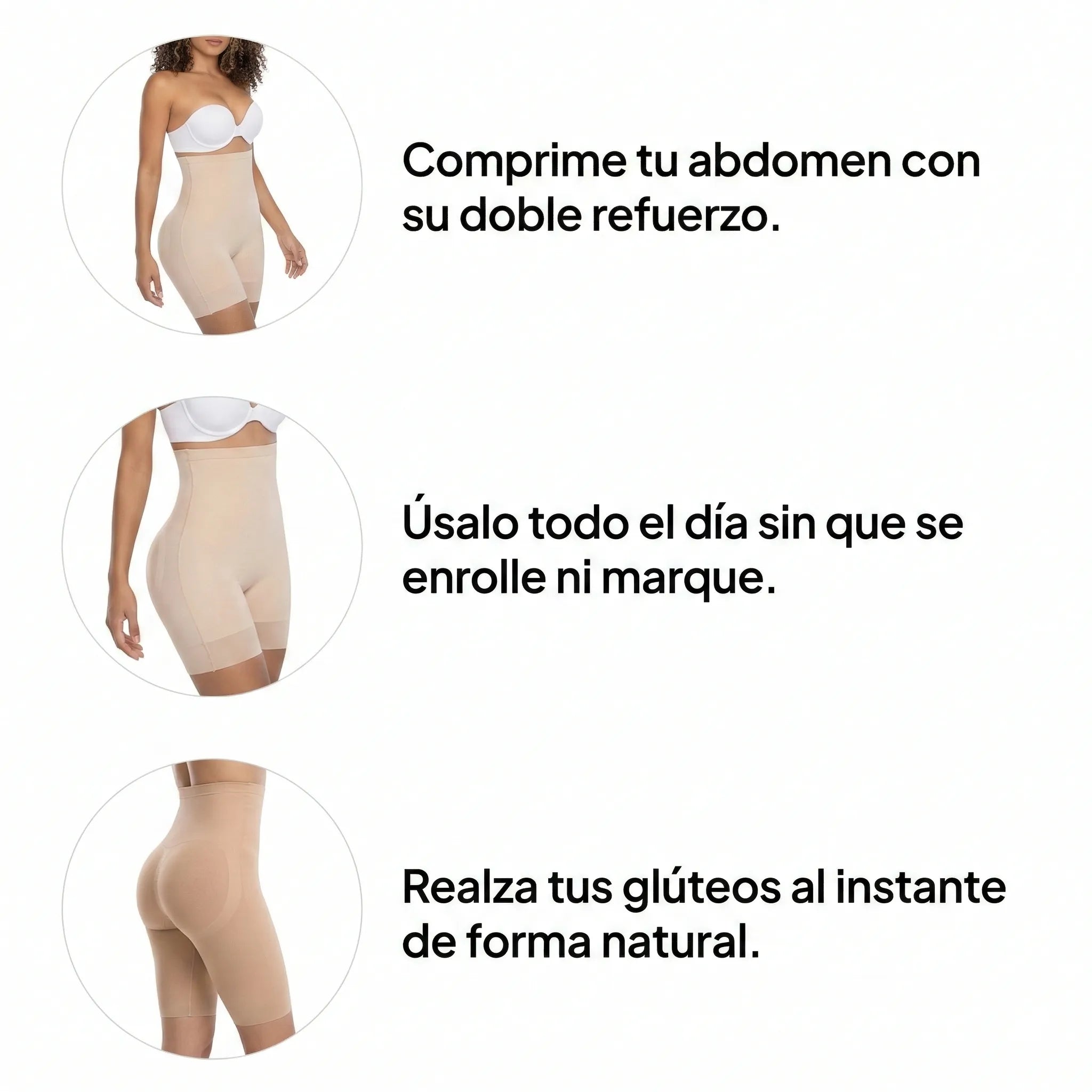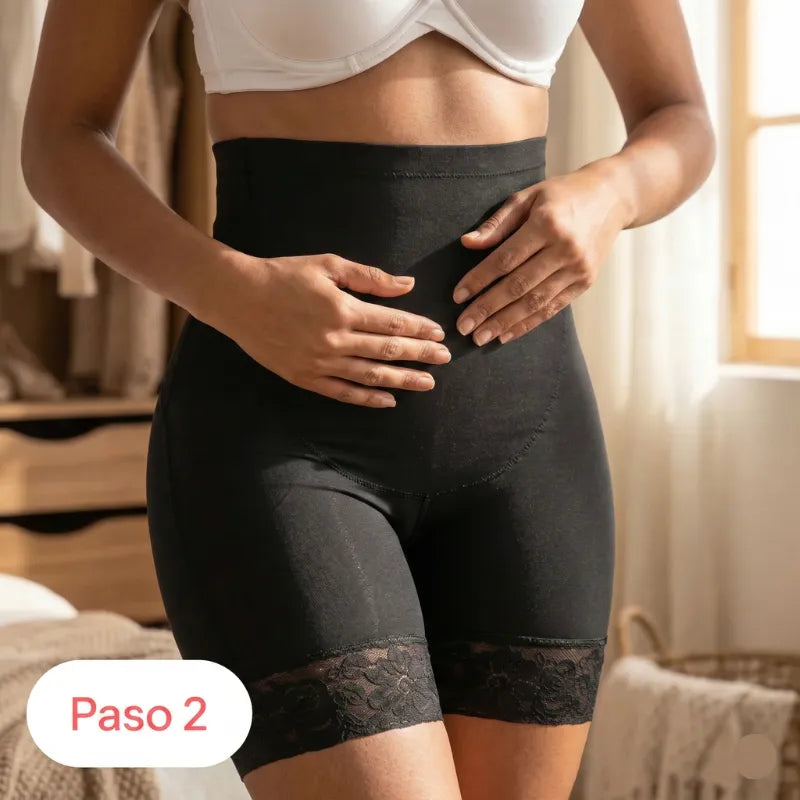 No aplasta. Su doble refuerzo reubica y define tu cintura al instante.