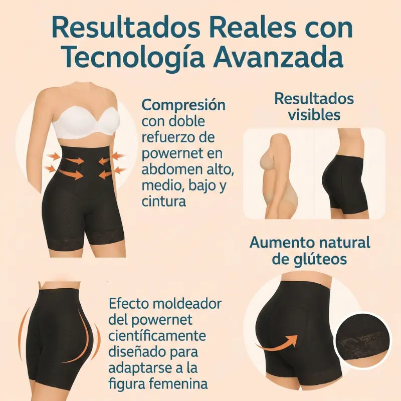 Su doble refuerzo Powernet ejerce compresión localizada para reestructurar el abdomen, garantizando resultados visibles, seguridad y confort sin marcas en tu piel.